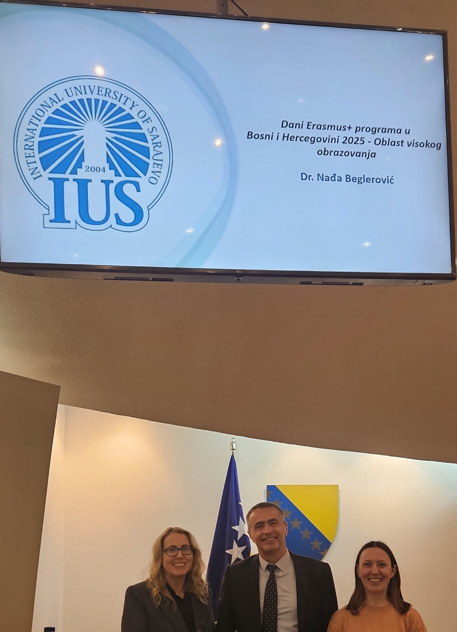 IUS se zahvaljuje na prepoznavanju rada i pozivu na ovaj važan događaj. Zahvaljujemo Ministarstvu civilnih poslova BiH i Nacionalnom Erasmus+ uredu na pozivu i kontinuiranoj podršci.