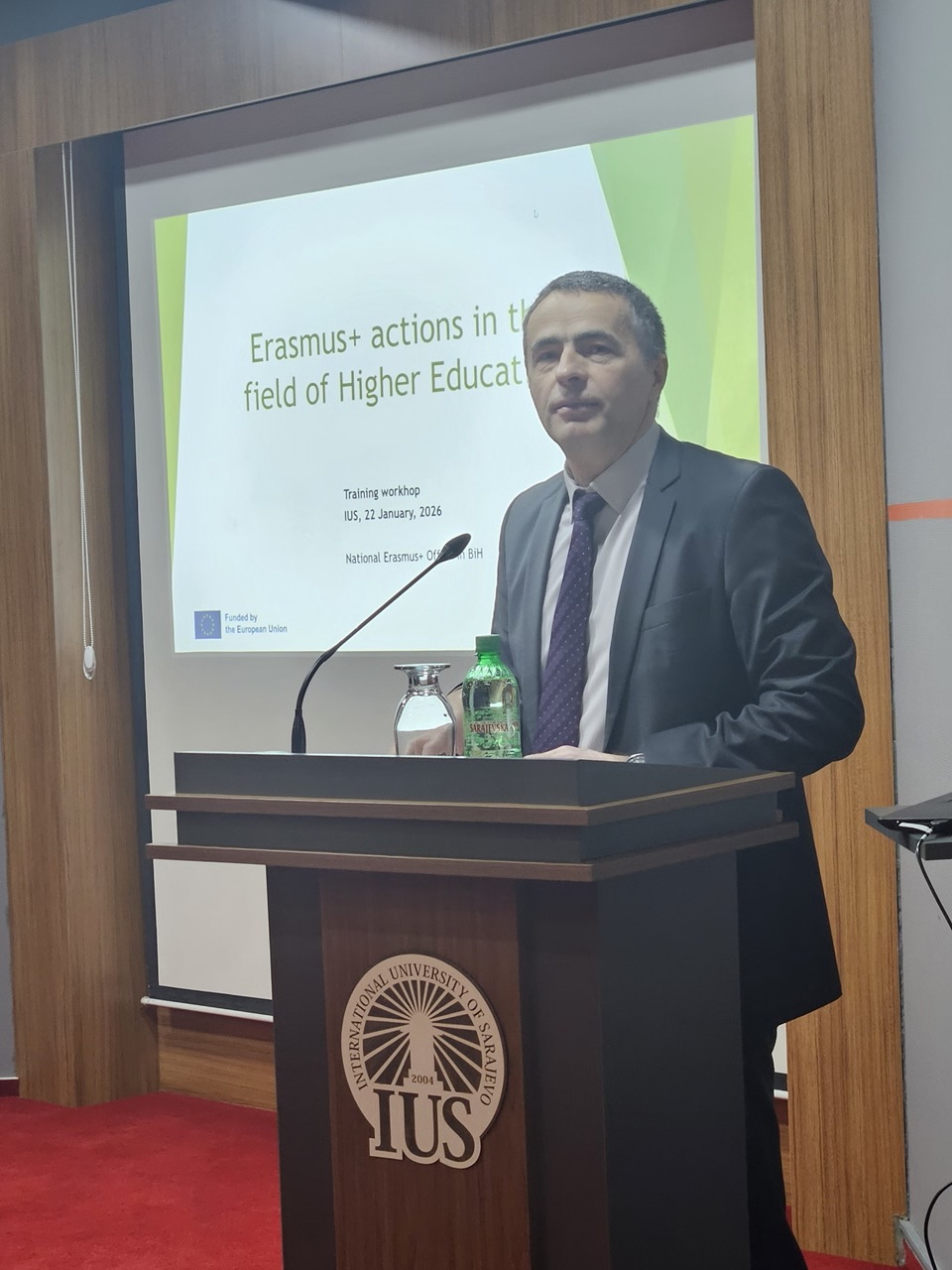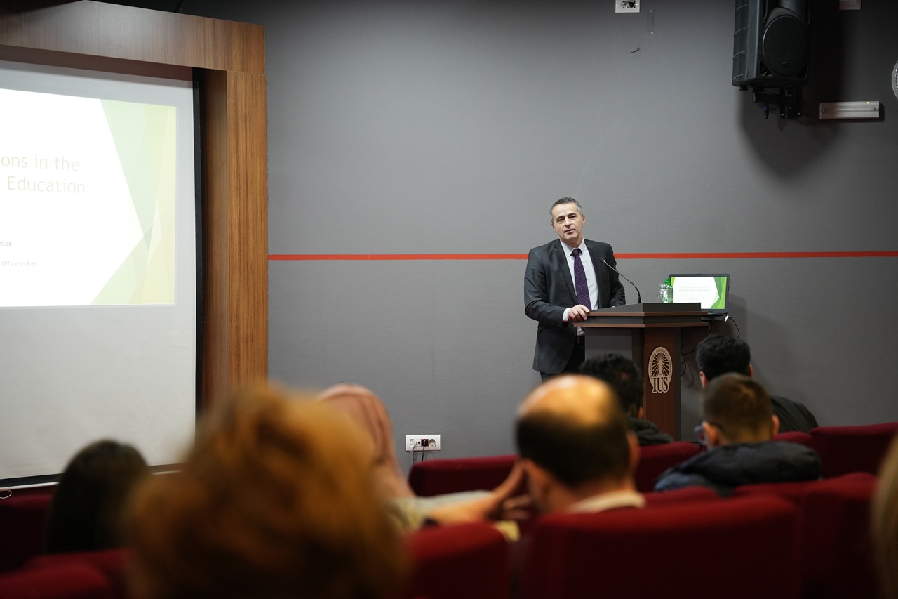 U četvrtak, 22. januara 2026. godine, na Internacionalnom univerzitetu u Sarajevu (IUS) održana je izuzetno informativna edukacija u organizaciji Ureda za sponzorisane projekte (OSP), pod nazivom „Erasmus+ mogućnosti u oblasti visokog obrazovanja: Kako razviti konkurentan Erasmus+ projektni prijedlog?” Edukacija je okupila nastavno i administrativno osoblje IUS-a s ciljem upoznavanja s mogućnostima finansiranja i najboljim praksama za izradu kvalitetnih i konkurentnih Erasmus+ projektnih prijedloga. Predavanje je održao g. Suad Muhibić, rukovodilac Nacionalnog Erasmus+ ureda u Bosni i Hercegovini.